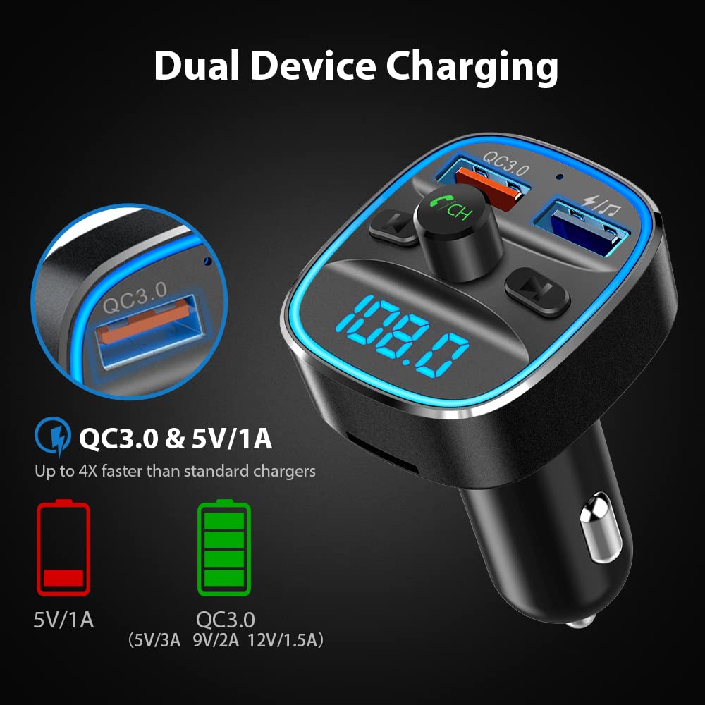 Amazon Com Nulaxy Bluetooth Fm Transmitter For Car Bluetooth Car Adapter With Dual Usb Charging Car Charger Mp3 Player Support Tf Card Usb Disk Hands Free Calling 7 Colors Led Backlit Light Electronics